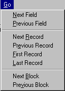 | Last Record | Moves the cursor to the last record in the current set of records in the block. | ||