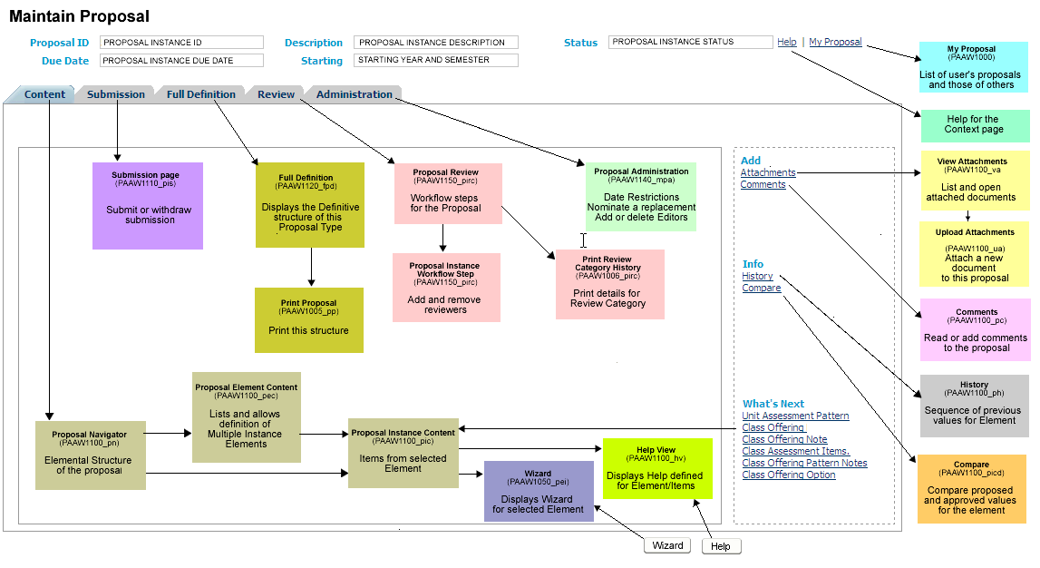 The Maintain Proposal Instance pages are used to create and review a Proposal.
