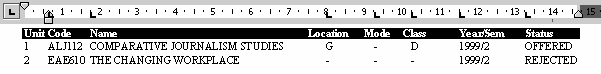 Unit Code Name Location Mode Class Year/Sem Status