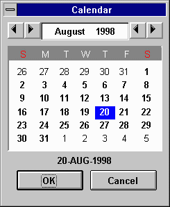 invokes the Electronic Calendar. A date selected in this Calendar is inserted