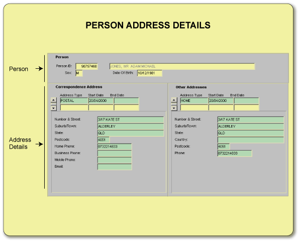 This form is used to enquire on Address details for a Person.