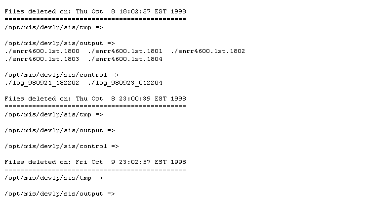 Rules/Notes: No reports are produced. A file listing all files deleted by this job is written to the 'CONTROL' directory (refer to the System Administrator) and is appended to each time the job runs (see file sample) |