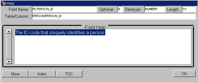 fig. 1.5 - Field Help Form (helpform)
