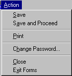 The upper list in this menu is maintained by the System Administrator and permits direct navigation to each of the forms listed. | ||