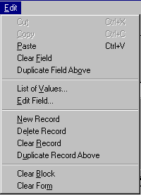 | Clear Block | Shift + F5 | Clears all displayed records from current block, without deleting them from the database. | |