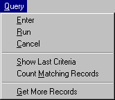 | Count Matching Records | Shift + F2 | Displays the number of records that will be retrieved should the currently entered query be executed. Use to check that a query will not return an unmanageable number of records. | |