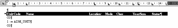 The following example demonstrates the addition of numbering to the parameter ADM_UNIT. As the value of ADM_UNIT can return more than one set of data, it is necessary to contain it within a repeating group code, in this instance G1 (see CORF2520). In this case, the numbering will only apply to the parameter ADM_UNIT but the formatting of tabs will be applied to the repeating group code, G1, as well as the ADM_UNIT parameter. Highlight the parameter ADM_UNIT on your template and choose Format from the pull down menus. Select the Bullets and Numbering option and choose the number format you desire. (e.g. For dot points, choose the dot point option).