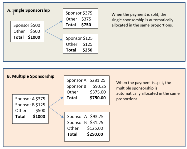Splitting Payments for Sponsored Amounts