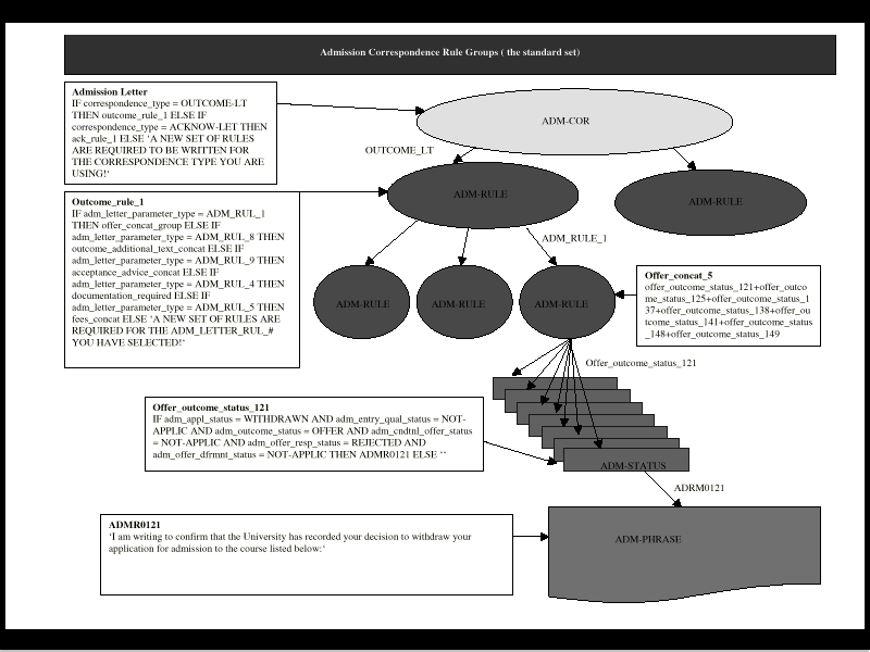 ADM-PHRASE rules first, then ADM-STATUS rules, then ADM-RULE rules, then ADM-COR rules. For a diagrammatic example of the released admission correspondence rules see adm_cor.gifFrom top to bottom the rules are;
