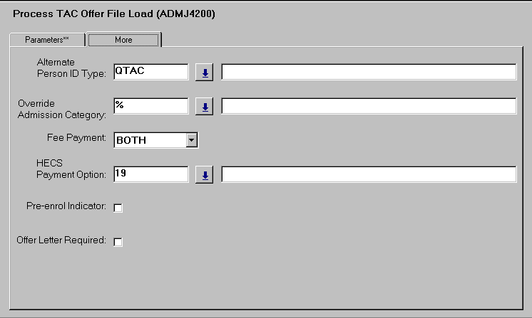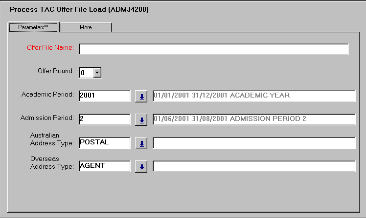 This job is run when the institution receives advice that the TAC offer round file has been provided. Full details of the Tertiary Admission Centre Admission process are provided in the Admissions for the Subsystem Specialist section. |