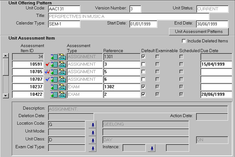 - The deletion date is the date automatically entered by the System when the unit assessment item is deleted.