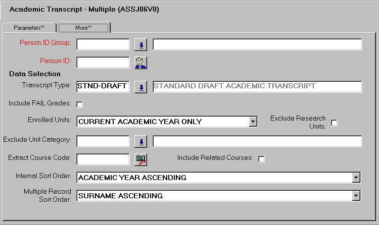 transcript. The extract is used by CORF2540, to create the appropriate academic transcript/s for students. |