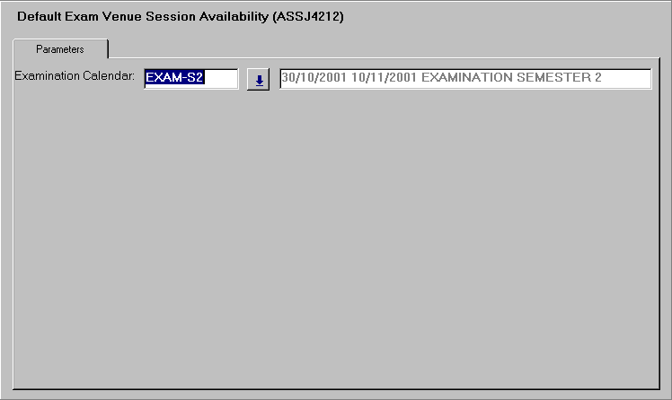 This job is run to assign all open venues to all exam sessions within an examination period. It is used as the starting point for creating venue availability records. If any venues are unavailable for any sessions during the examination period, the relevant availability records are manually deleted in the Maintain Venue Session Availability form ( ASSF4212). |