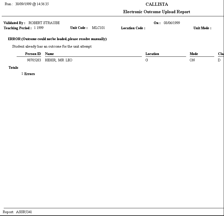 Upload Student Unit Attempt Outcomes - Exception Report |