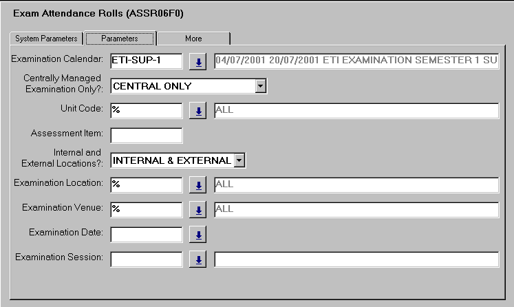 The parameters in this job are used to refine the data set produced in the report. The Centrally Managed Examination Only parameter allows for the running of the report displaying: