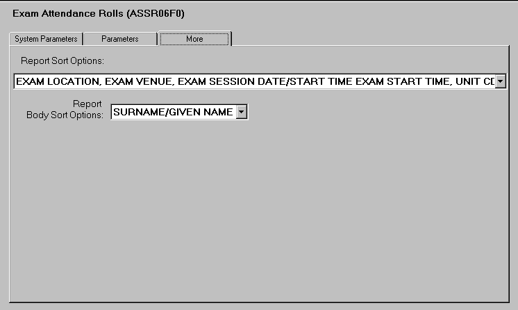 It is recommended that this job be run in batch mode. However, it can be run online, particularly where the report is run with parameters specifying a small data set, such as a specific examination session. Refer to the Job Control and Scheduling subsystem for details of scheduling and running batch jobs. |