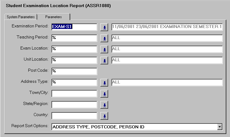 used address type is used. There are several sort combinations that can be selected from the LOV. |
