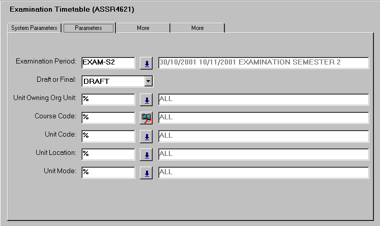 This report produces printed copies of the examination timetable in order to advise students and supervisors of the examination details. |