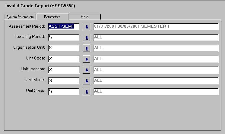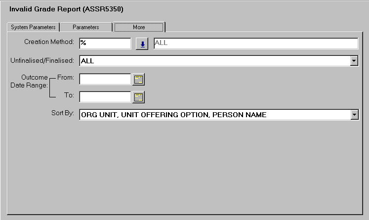 the user to select all invalid grades, unfinalised only or finalised only. The grade Creation Method parameter allows
