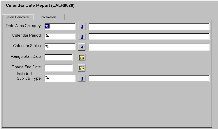 The parameters for this job are used to refine the data set produced in the report. The Start and End date range selects ALL calendar instances whose:
