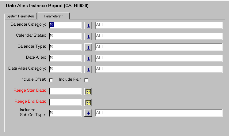 This report provides a list of date alias instance details a specified date range. An option is available to include offset and pairs details. |