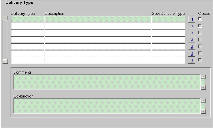 Insert Mode when invoked from Menu. In context of current record when invoked from STAF112O Government Delivery Type |