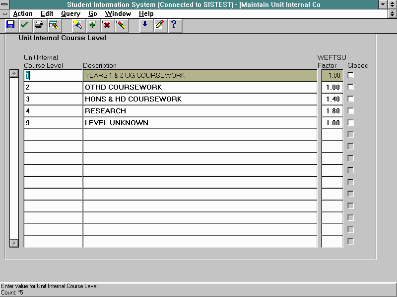 | Purpose | To allow the creation and maintenance of Unit Internal Course Levels and their relative weightings | |