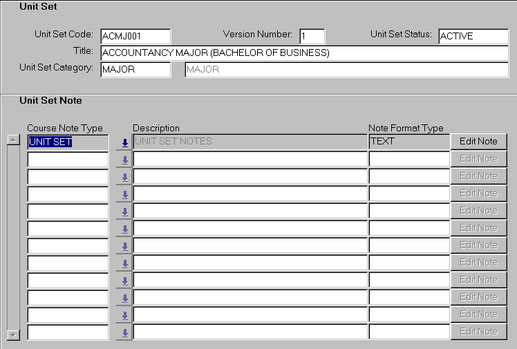 For further details on the use of the notes facility, refer to the Notes Facility in the General System Functions and Facilities Section. Refer to the Unit Sets section of the Course Structure and Planning overview for further details on the use of unit sets. |