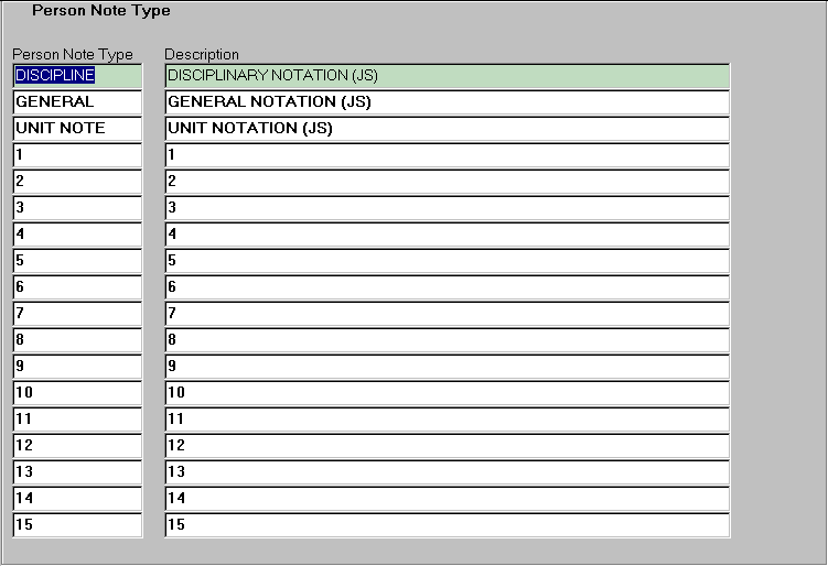 | Purpose | To allow the creation and maintenance of the types of notes which may be associated with a person record | |