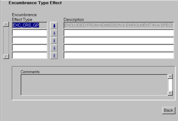 - record those encumbrance effects which apply to a student with the encumbrance type.