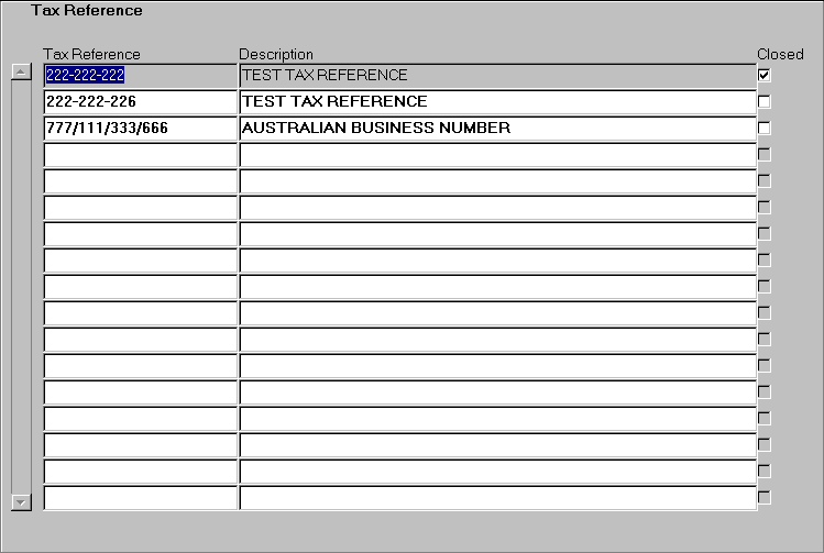 Legislation may require that tax is levied on some supplies and services provided to students by a tertiary institution. This form allows for the creation of tax reference (or tax registration) numbers or codes required in administering such a tax. In an Australian context, the Goods and Services tax (GST) is to be levied on certain student fees in accordance with the 'A New Tax System (Goods and Services Tax) Regulations 1999'. An Australian Business Number (ABN) of the issuing body must be recorded on tax invoices. In CallistaTax references recorded here are assigned to fee categories for specific fee periods in the form FINF2800. If a category is designated as taxable, the component fee liabilities may or may not be taxable. Tax reference numbers/codes are included in the extract of data for Statement of Account and Sponsor Summary Statement extracts, as are tax amounts for those fees that are taxable. Example : For second semester 2000, fee category DOM-HECS includes these taxable fees: GSF (general service fee) and COMP-HIRE (fee to hire computer equipment). An ABN, 777 111 333, is recorded in this form and allocated to DOM-HECS for FEE-SEM2 in the form FINF2800. This ABN reference will be extracted for inclusion on the statements of students in the DOM-HECS category. |