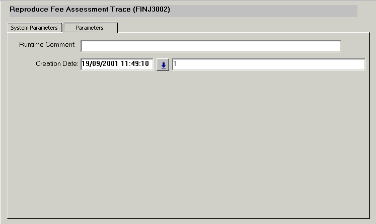 The creation date of a previous run of FINJ3500 must be supplied. This is the date when the job was run, not it's effective run date. The creation date is shown on the banner page of a previously produced abridged trace against the label 'Report As At…'. |