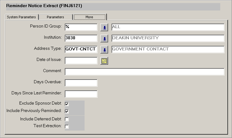 the Exclude Sponsor Debt indicator to Y will extract students