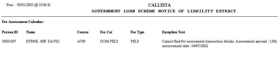 mandatory - used to limit the selection of records to those with a Government Loan Scheme assessment within the specified fee period. The default is the latest fee assessment period. |
