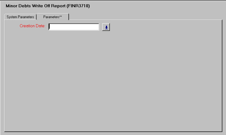 This report lists outcomes of the Write Off Minor Debts job, FINJ3700 , and could be run as a dependent job. |