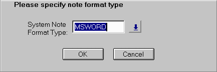 - Select the corresponding Edit Note navigation button. The Notes Facility is invoked, and a Note Format Type dialogue box displayed.