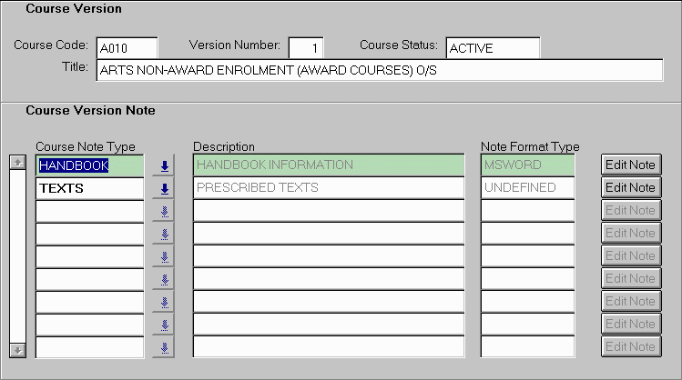 - Select TEXT from the list of values in the Note Format Type field of the dialogue box. Click the OK button. A blank Note form is displayed.
