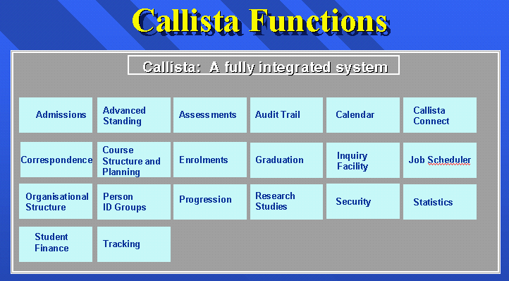 The diagram below shows the twenty one subsystems which make up the Student Information System.
