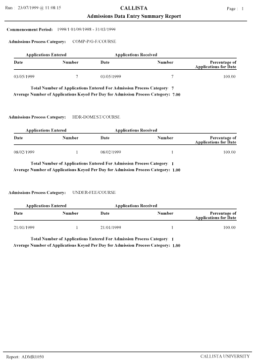 This report provides details of students who have applied for special consideration, and the status of their applications. It may be used for special consideration application management and/or sent to organisational units for information. |