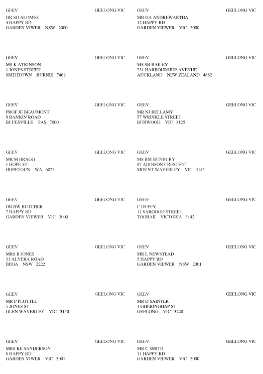 This report is used to produce mail labels that are used for ad hoc mailings to exam supervisors, particularly supervisors in charge of external locations. |