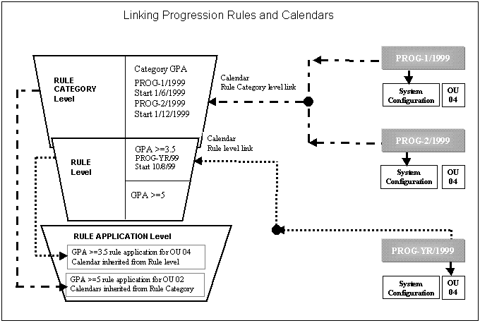 For a rule to be applied it must be linked (at some level in the rule application hierarchy) to one or more progression calendar types. The progression calendar types that can be linked to an application have been defined and configured in