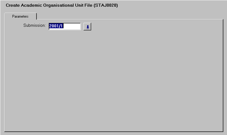 This job is dependent on the Create Government Submission Snapshot process (STAJ0110) being performed. Note: The AOU file created by this job contains Teaching responsibility Organisational Units that appear on the GOVT_STUDENT_LOAD table for a given submission year. Any additional organisational units required in the AOU for the Staff Collection must be manually added to the file. |