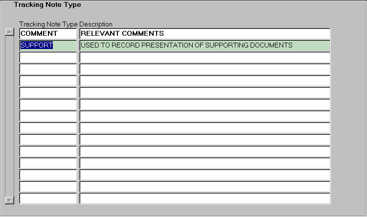| Purpose | To allow the recording and maintenance of institution defined tracking note types | |