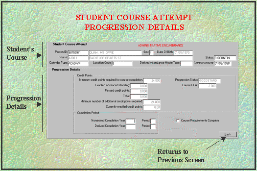 Student's Course Progression Details (INQF1200)