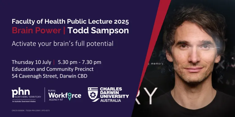 Join us for the Faculty of Health Public Lecture, Brain Power, on Thursday 10 July from 5.30 pm to 7.30 pm at the Education and Community Precinct, Darwin City.