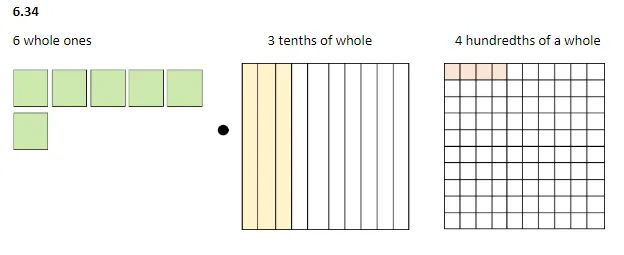 Next, we have 6.34. This time we’ve had to add the hundreds chart as 4 is in the hundredth's column.