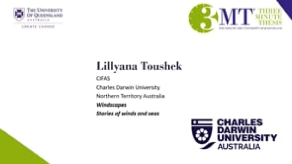 With just three minutes to give a compelling presentation on their thesis topic and its significance, CDU's Three Minute Thesis (3MT) finalists have the difficult task of presenting their research in a language appropriate for a non-specialist audience.